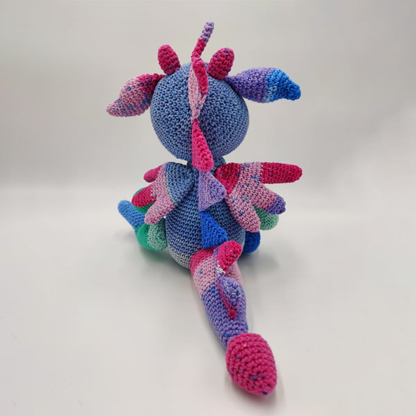 Maak kennis met onze betoverende gehaakte gekleurde draak! Deze unieke en levendige draak is met de hand gehaakt en brengt een dosis magie in je leven. Met zijn felle kleuren en gedetailleerde ontwerp is hij een opvallend stuk om te bewonderen. De zachte gehaakte textuur maakt hem perfect om mee te knuffelen en te spelen. Of het nu als decoratie in de kinderkamer is of als fantasierijke speelkameraad voor avonturen, deze gehaakte draak zal de verbeelding van zowel kinderen als volwassenen prikkelen. Beleef een kleurrijk avontuur met deze prachtige gehaakte gekleurde draak als je nieuwe metgezel!